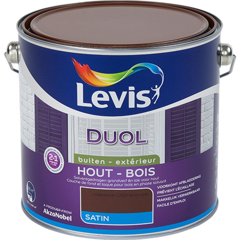 Contenue dans un pot de 2,5 L, La laque pour bois Duol brun noix satinée de la marque Levis est aussi utilisable comme couche de fond. Un produit polyvalent qui sera idéal pour vos structures extérieures en bois.