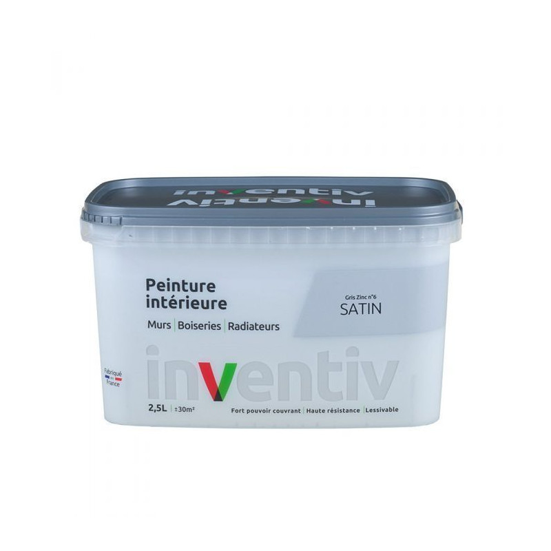 D'une contenance de 2,5 L, cette peinture gris zinc n°6 satinée vous permettra de choisir, de tester, de comparer ou bien de retoucher une couleur facilement.