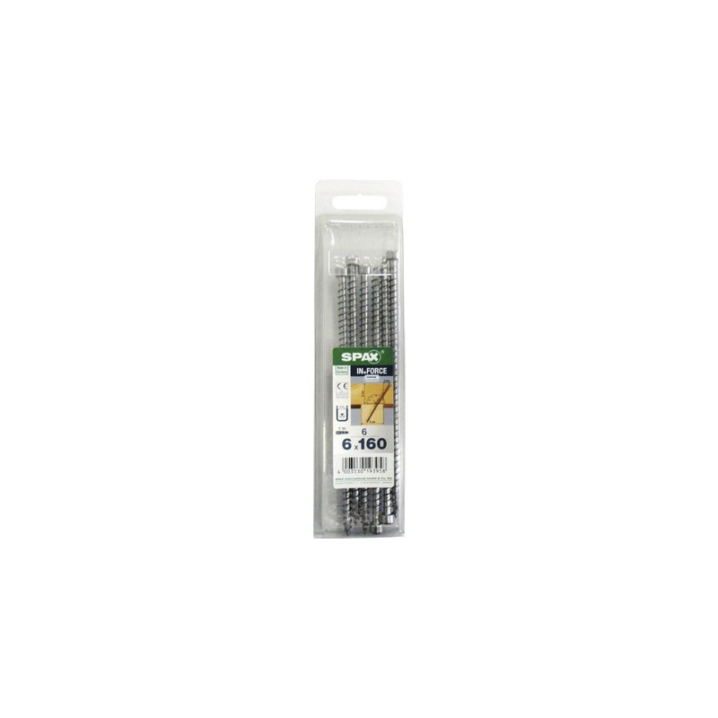 Destinée à être utilisée lors de constructions en bois, de renforcements des coupes ou de raccordements de bois, la vis IN Force de la marque Spax est conçue en acier. Selon le type de bois, cette vis peut être placée sans avoir réalisé d'avant-trou.