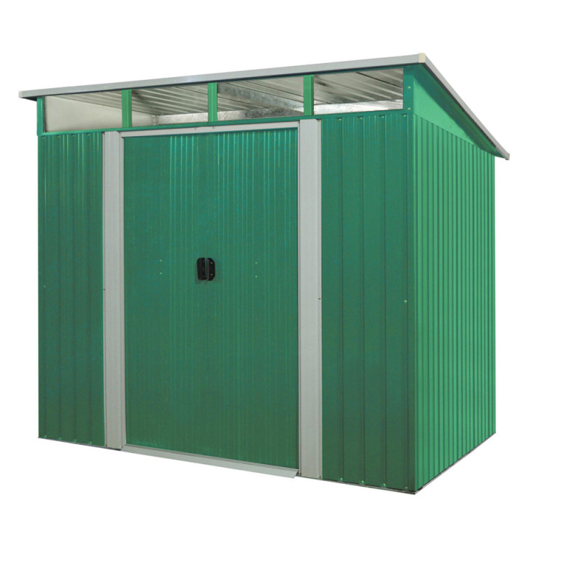 Le revêtement en peinture polyester appliqué sur l'acier électro-galvanisé préserve l'aspect esthétique dans le temps. La finition bicolore contribue à une intégration discrète et élégante dans le jardin. L'absence de plancher intégré permet d'adapter le sol selon les préférences et les besoins spécifiques de rangement.
