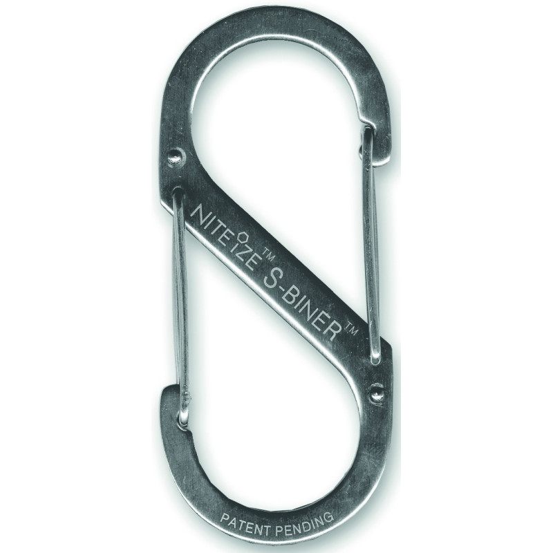 Ce mousqueton S-Biner permet d'accrocher des petits objets rapidement à une ceinture ou un sac à dos. Il est fabriqué en acier inoxydable gris et comporte des dimensions de 67 x 29 mm.