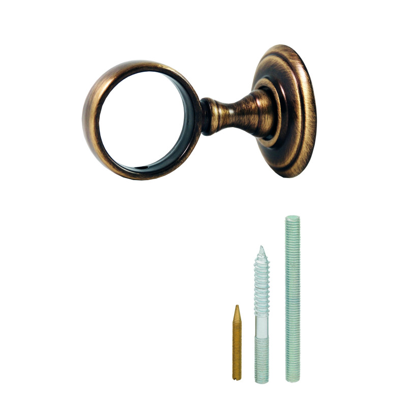 Cet anneau patiné est fourni avec la visserie nécessaire à tous types de fixation (murs traditionnels et cloisons creuses). Son diamètre est de 35 mm.