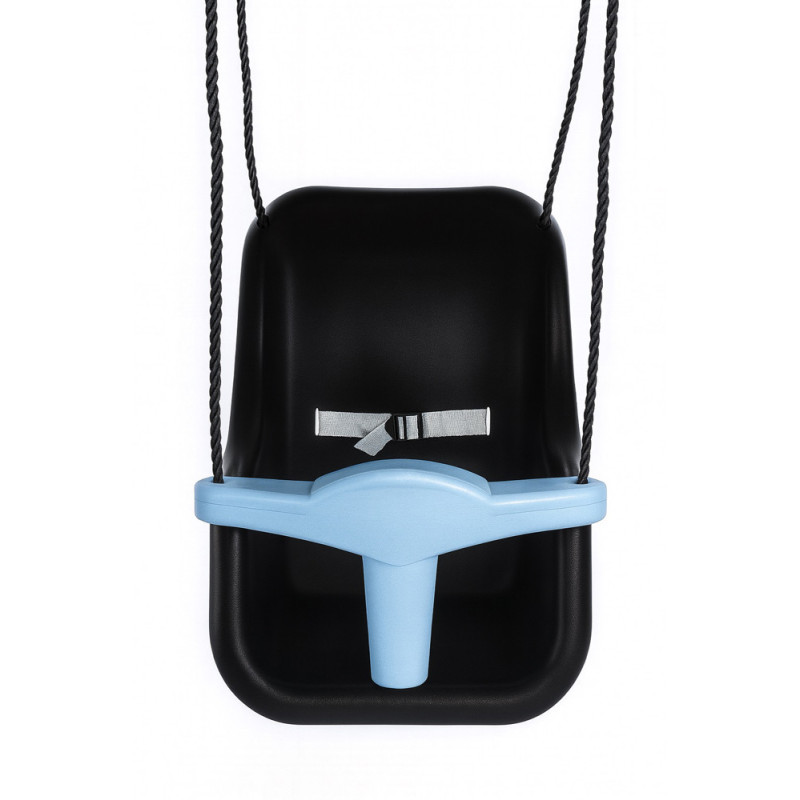 Le siège de balançoire pour bébé Luxe anthracite et bleu pastel est un accessoire de portique en PVC, équipé d'une ceinture de sécurité. Ses dimensions de 37 cm de longueur et 36 cm de largeur conviennent pour un poids recommandé allant jusqu'à 50 kg.