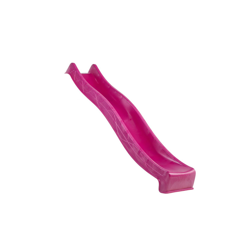 Ce toboggan est destiné aux enfants âgés de 3 à 13 ans. Il supporte un poids maximum recommandé de 50 kg, couvrant ainsi une large tranche d'âge. Son utilisation principale est comme accessoire pour une tour balançoire ou d'autres structures de jeu similaires. La couleur fuchsia vive le rend facilement identifiable et attrayant pour les jeunes utilisateurs.
