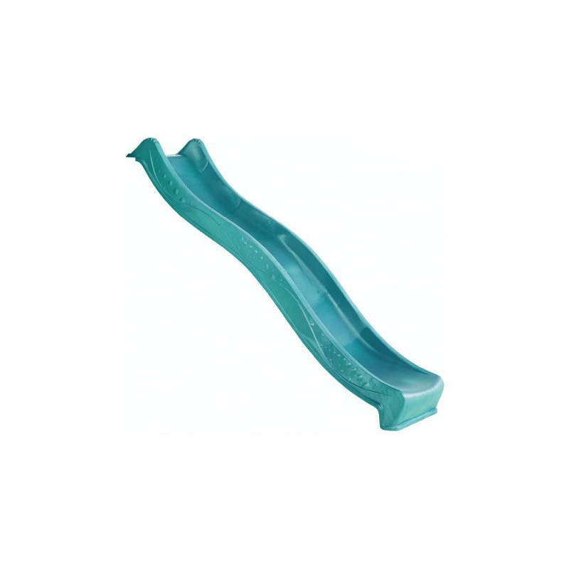 Le toboggan Yulvo turquoise est un accessoire de portique conçu pour offrir des heures de jeu en toute sécurité. Sa longueur totale est de 220 cm, soit 2,2 m, avec une largeur de 50 cm. Ces dimensions généreuses permettent une glisse fluide et stable. Il est compatible avec une plateforme d'une hauteur de 1,2 m.