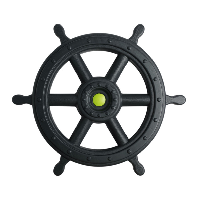 Le gouvernail de bateau anthracite et lime de la marque BNB WOOD est un volant rotatif en PVC synthétique d'un diamètre de 53 cm. Conçu pour les enfants de 3 à 13 ans, il constitue un accessoire de portique robuste et coloré.