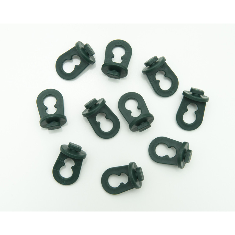 Ces crochets de suspension verts, en synthétique, sont conçus pour les serres Canopia. Ce kit de 10 pièces anti-rouille supporte jusqu'à 2 kg par crochet, idéal pour suspendre plantes ou toiles d'ombrage.