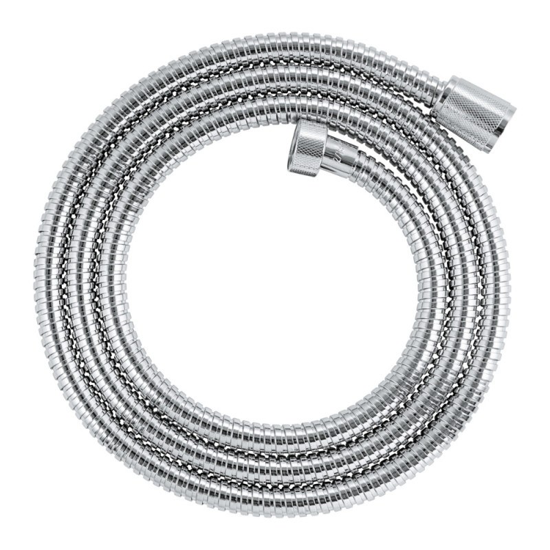 Le flexible de douche GROHE VitalioFlex Metal de 1,75 m en finition chrome intègre la technologie AntiFold pour éviter les torsions et dispose de raccords universels 1/2". Sa construction en métal résiste à une pression de 5 bars et à une température de 70°C.