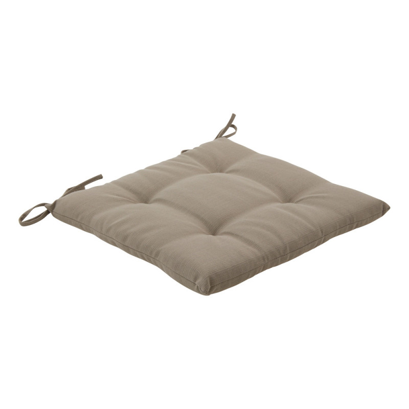 La galette de chaise matelassée Koraï café est conçue en polyester déperlant pour une résistance aux intempéries et garnie de mousse pour un confort optimal. Ses dimensions de 40 x 40 cm et son entretien en machine en font un accessoire pratique pour le jardin.