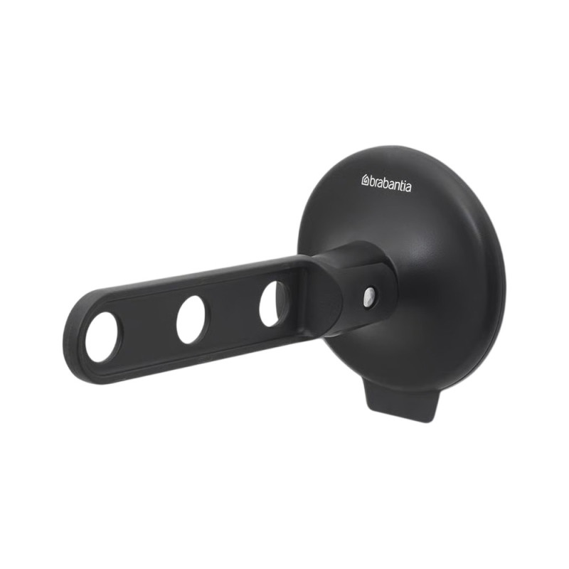 Le crochet à cintre avec ventouse noir BRABANTIA permet d'accrocher jusqu'à 3 cintres et une charge de 2 kg sur diverses surfaces. Son système de ventouse offre une solution pratique pour aérer ou sécher les vêtements sans nécessiter de lavage.