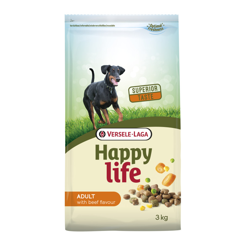 Spécialement conçues pour les chiens adultes, ces croquettes de la marque Happy Life sont des aliments secs qui raviront votre animal de compagnie. Faciles à manger et à digérer, ces croquettes sont au goût de boeuf.