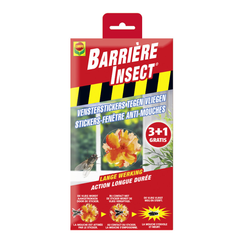 Les stickers anti-mouches Barrière Insect de Compo constituent une barrière décorative et inodore contre les insectes volants. Offrant une efficacité durable jusqu'à 90 jours sans insecticide dans l'air, ils sont adaptés à toutes les pièces de la maison.