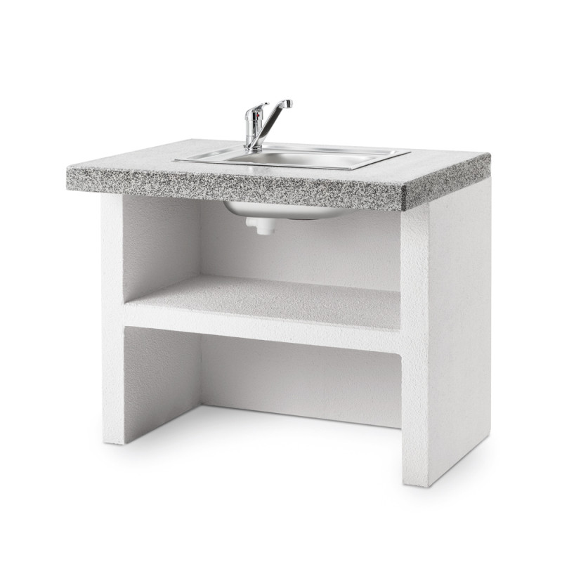 Le cœur de ce module est un évier encastré en acier inoxydable, fourni avec mitigeur chromé de série, garantissant à la fois praticité et durabilité. L’inox résiste aux éclaboussures, à la corrosion et aux usages fréquents, offrant une surface hygiénique pour laver légumes, fruits, ustensiles et plats. Vous pouvez préparer vos grillades et vos repas en plein air sans compromettre la propreté et le confort.