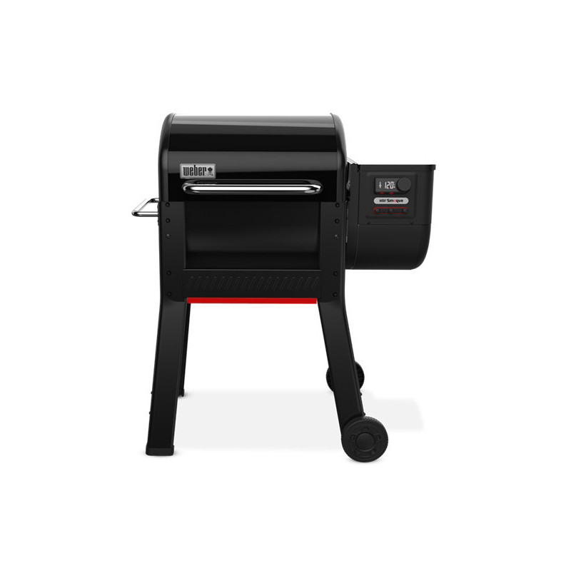 La surface de cuisson de 56 x 45 cm en acier inoxydable assure une répartition uniforme de la chaleur sur toute la zone de cuisson. La cuve et le couvercle, bénéficiant d'une finition en acier émaillé exclusive Weber, allient esthétique raffinée et résistance exceptionnelle aux éléments. Cette conception prévient la formation de rouille et de craquelures, assurant une longévité accrue à votre appareil. La trémie de 9 kg vous permet de cuisiner pendant de longues périodes sans interruption.
