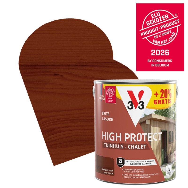 Contenue dans un récipient de 3 L, la lasure High Protect de la marque V33 présente une finition acajou à la texture satinée qui sublimera votre chalet de jardin. Ce produit vous assure également une protection optimale face aux agressions climatiques et aux rayons UV, peu importe la saison.