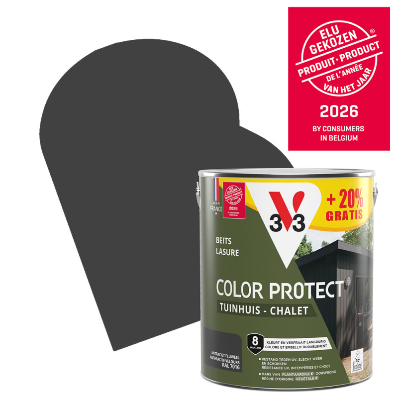 Affichant une élégante couleur anthracite avec une finition mate, la lasure Color Protect de la marque V33 vous promet une protection efficace contre les rayons UV et les différentes agressions climatiques. Ce produit vous permet de sublimer votre abri de jardin et vous assure une facilité d'application.