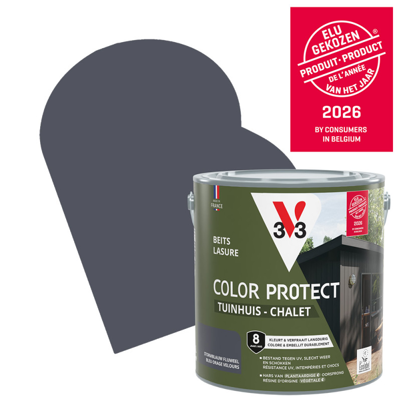 Facile à appliquer, la lasure Color Protect de la marque V33 offre une protection durable contre les intempéries et une touche élégante à vos chalets et autres boiseries extérieures. Ce produit est contenu dans un pot de 2,5 L et affiche une jolie couleur bleu orage à la finition mate.