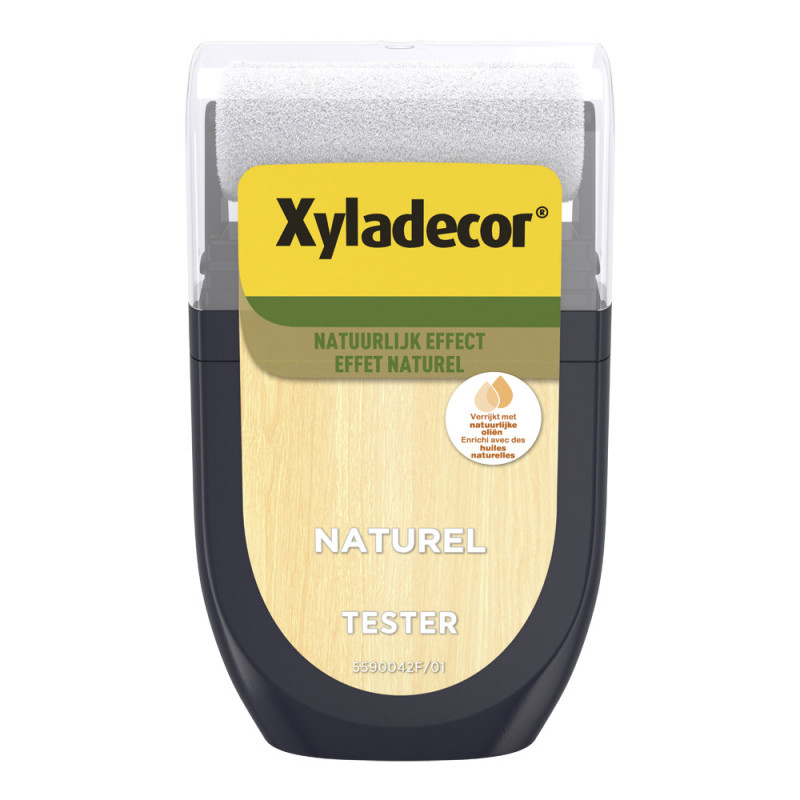 Le testeur lasure pour bois effet naturel de la marque Xyladecore, au coloris naturel, est un mini rouleau pour évaluer la brillance et la teinte sur bois extérieur. Sa formule enrichie aux huiles offre un fini mat.
