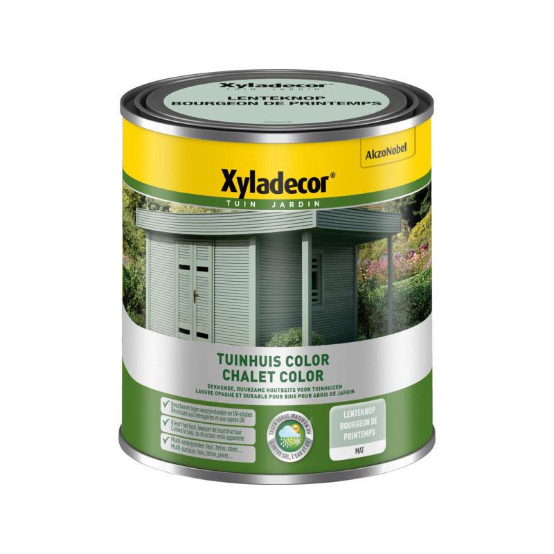 La lasure pour bois Chalet Color de la marque Xyladecor offre une solution opaque et durable pour l'embellissement et la protection de vos structures en bois extérieures. Conçue spécifiquement pour les chalets et autres éléments de jardin, cette lasure se distingue par sa finition mate qui respecte l'aspect naturel du bois tout en lui apportant une touche de couleur.