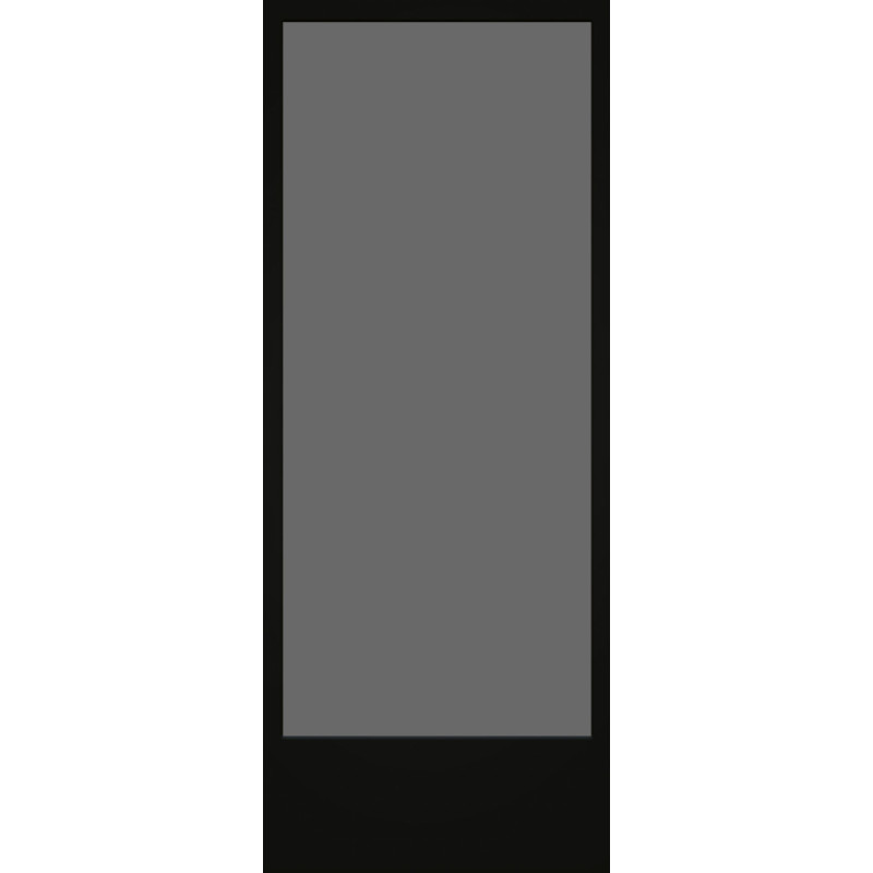 Cette porte vitrée THYS de 78 x 201,5 cm associe un verre trempé gris fumé de 8 mm à un cadre en mélamine noir mat pour un look contemporain. Sa structure en bois et son bloc-porte complet avec accessoires noirs garantissent une installation robuste.