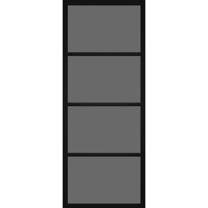 Cette porte vitrée THYS en bois mélamine noir mat intègre un large panneau de verre trempé gris fumé de 8 mm. Son design contemporain Steel Look et ses dimensions de 73 x 201,5 cm en font un élément fonctionnel pour les intérieurs modernes.