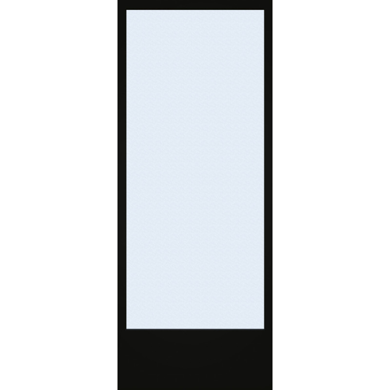 Cette porte vitrée THYS de 78 x 201,5 cm présente un Steel Look noir mat contemporain. Sa structure en bois intègre un verre trempé mat de 8 mm d'épaisseur et est équipée de trois charnières à billes.