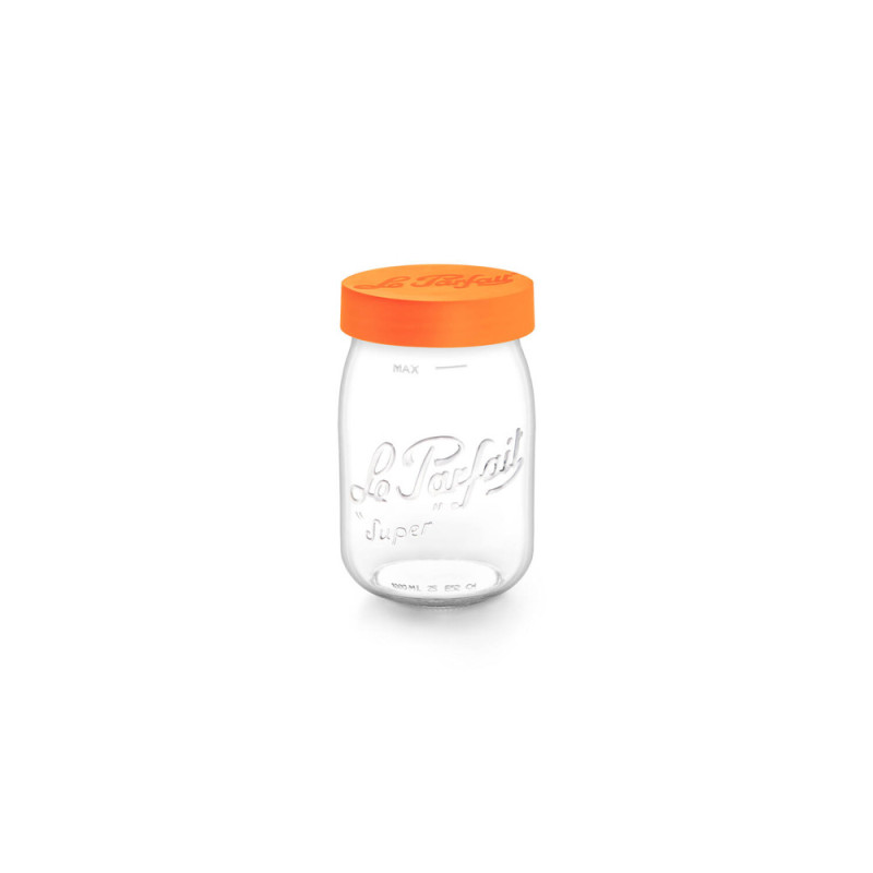 Le bocal en verre Color Vis de la marque Le Parfait est idéal pour la conservation du vrac et la fermentation. Son couvercle affiche une belle finition de couleur orange et présente une contenance de 1 L.