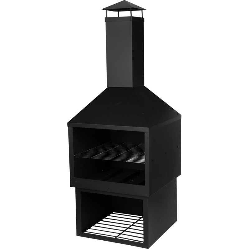 La cheminée d'ambiance de 44 cm de diamètre et 118 cm de hauteur est fabriquée en métal et présente une résistance au feu jusqu'à 600 °C. Son foyer en métal d'une épaisseur de 0,6 mm et sa couleur noire en font un équipement fonctionnel.