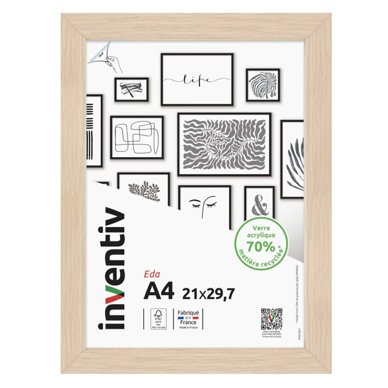 Ce cadre décoratif Inventiv, fabriqué en France, présente une baguette fine et bombée en bois FSC couleur naturelle. Il est équipé d'un système d'accroches et d'un verre acrylique recyclé pour une mise en valeur optimale des photos au format 20 x 30 cm.