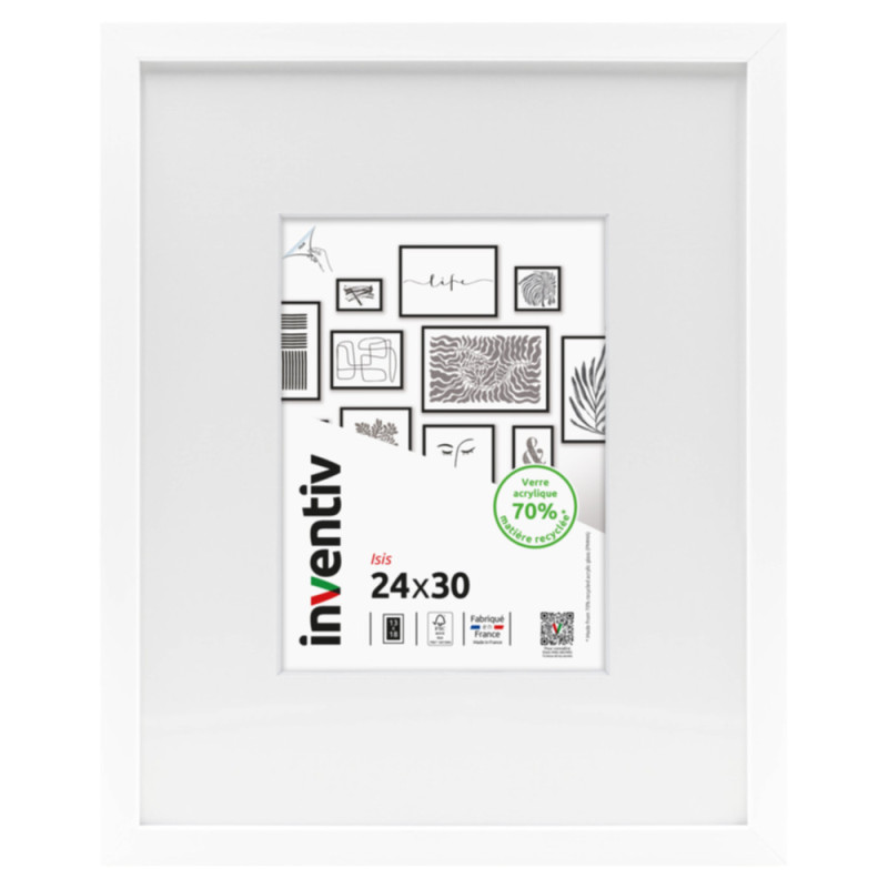 Ce cadre décoratif Inventiv, de format 24 x 30 cm, est conçu pour une mise en valeur optimale de vos photos en intérieur. Sa construction en bois massif et son verre acrylique recyclé offrent une présentation à la fois esthétique et durable.