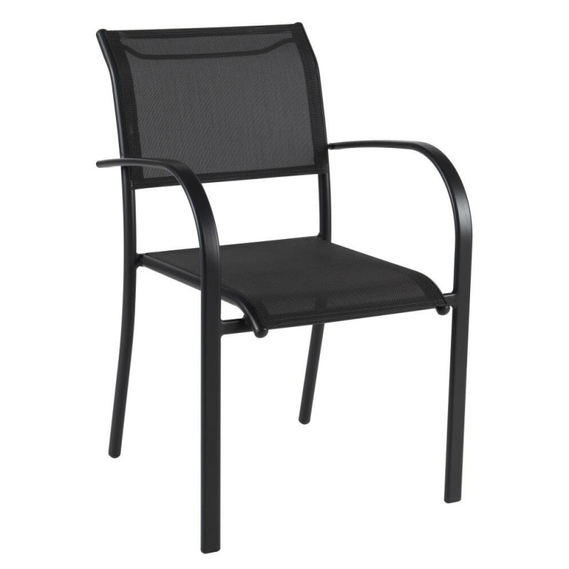 - Confort assuré par les accoudoirs et le tissu respirant de l'assise, qui sèche rapidement après une averse.
