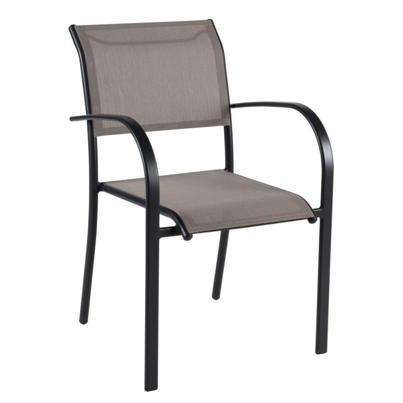 Le fauteuil de jardin Oze taupe se distingue par sa structure en aluminium robuste et légère, associée à une toile en polyester enduit PVC résistante aux intempéries. Son design empilable et ses dimensions compactes en font une solution pratique et élégante pour les espaces extérieurs.