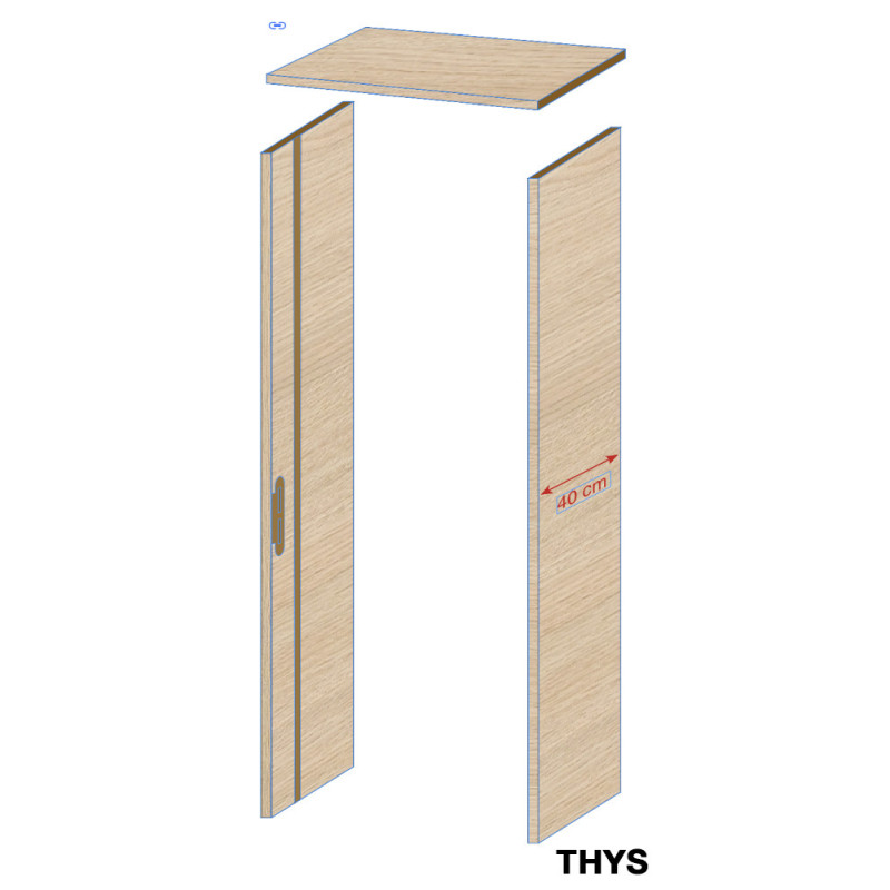 L'ébrasement de double-porte Realwood Oak de Thys est un ensemble complet conçu pour l'installation de portes doubles. Sa structure présente une hauteur de 202,1 cm et une largeur d'ébrasement de 40 cm, permettant son intégration dans des murs de cette épaisseur. L'ensemble est fourni avec tous les éléments nécessaires au montage et à la sécurisation des deux vantaux.