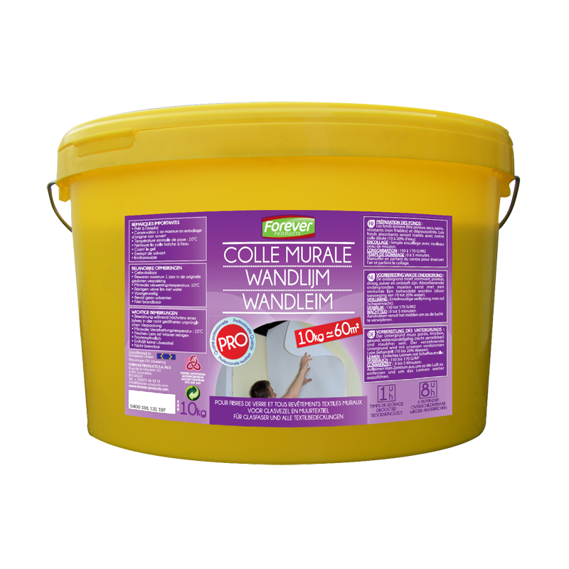 Cette colle murale de qualité est utilisée pour la fibre de verre et tous les revêtements muraux. Cette colle s'applique sur un support propre et sec. Son temps de séchage est de 24 h.