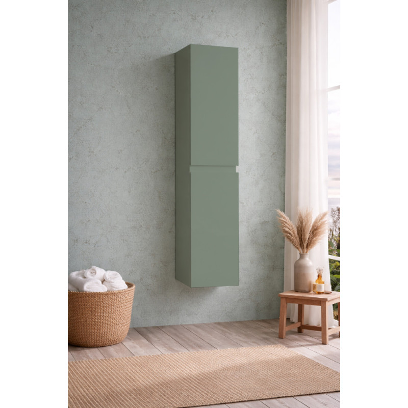 La colonne Valentina THYS, d'une largeur de 35 cm, offre un rangement vertical compact avec ses 2 portes et son fini vert mat. Son montage mural et ses étagères intégrées permettent d'organiser l'espace de la salle de bain de manière fonctionnelle.
