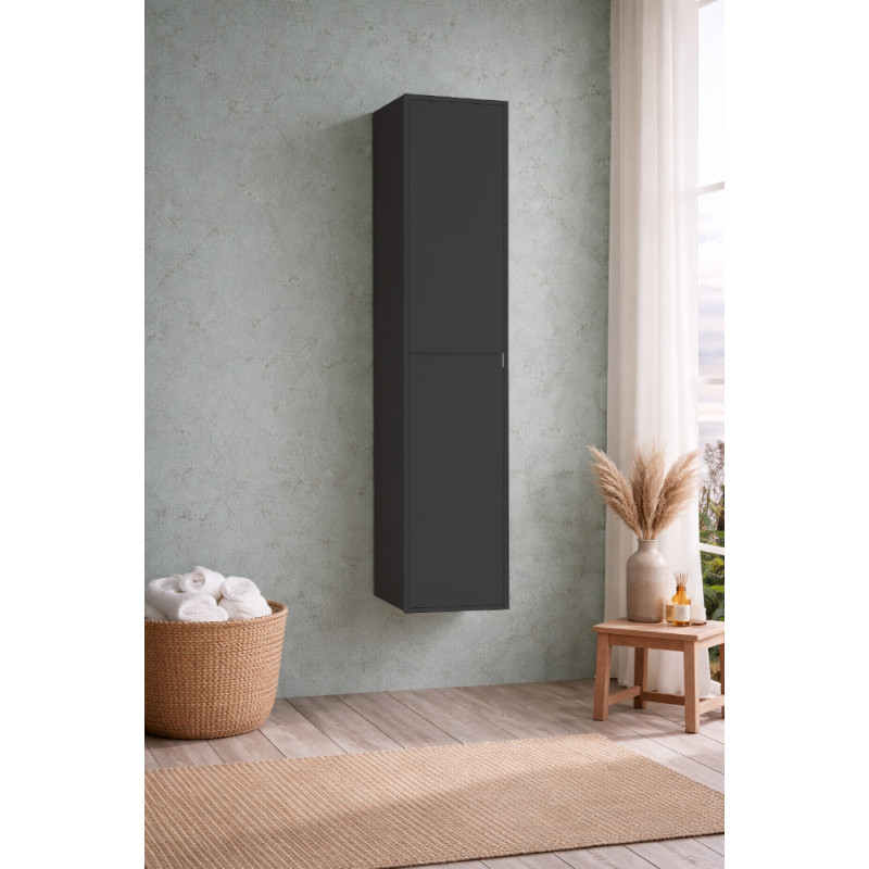 La colonne de salle de bain Melanie de THYS, en finition noire, offre un rangement vertical compact de 35 cm de largeur. Son agencement intérieur avec étagères et ses portes à fermeture progressive permettent d'organiser l'espace avec efficacité.