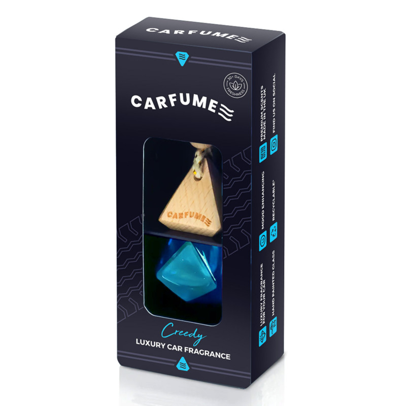 Le désodorisant pour voiture Creedy de la marque Carfume Wood diffuse un parfum sophistiqué inspiré de Creed Aventus, alliant des notes de pomme, de cassis et de bois. Son format compact s'accroche facilement et assure une diffusion continue pendant une durée de 42 jours.