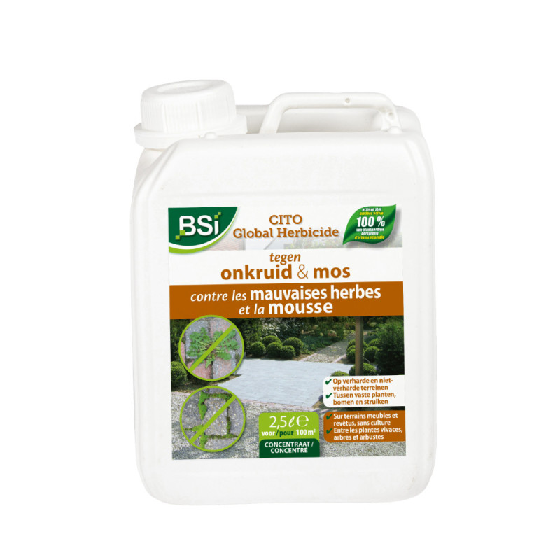 Le désherbant concentré Cito de BSI est un herbicide foliaire de contact conçu pour une action localisée. Sa formulation liquide concentrée à base d'acide acétique permet une élimination rapide des adventices annuelles et de la mousse sur divers supports. Le produit agit par absorption au niveau des feuilles et des tiges vertes des plantes levées, ce qui nécessite une application précise pour préserver la végétation souhaitée.