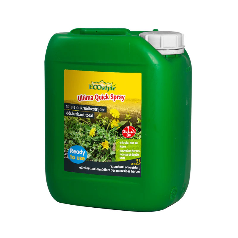 Ce désherbant total Ultima Quick Spray d'Ecostyle agit par contact et déshydratation rapide des végétaux indésirables. Sa formulation à base d'acide pélargonique assure une action visible en quelques heures et une biodégradation accélérée dans le sol.