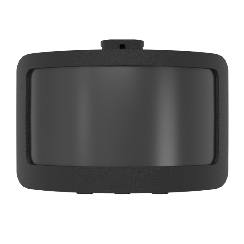Le détecteur de mouvement Epifano de la marque Eglo, en plastique noir, s'intègre aux projecteurs de la gamme. Il offre une portée de détection réglable de 2 à 10 mètres et un temps d'allumage programmable de 5 secondes à 9 minutes.