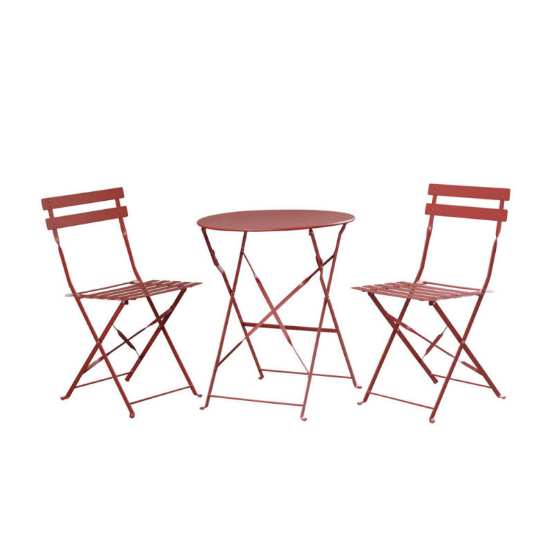 L'ensemble bistro Peps terracotta, composé d'une table et de deux chaises pliantes en métal, offre une solution compacte et pratique pour les petits espaces. Son design moderne et sa couleur naturelle créent une ambiance conviviale sur une terrasse ou un balcon, avec un entretien simplifié.