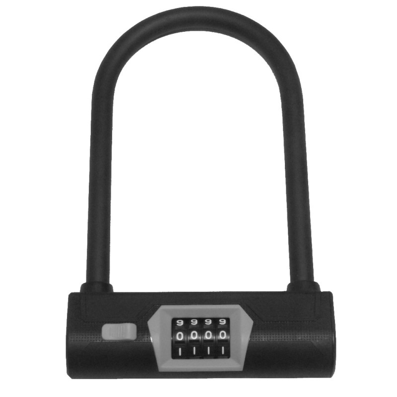 Doté d'une forme de U, cet antivol a des dimensions de 15,4 x 24,7 cm. Il est pourvu d'une serrure à code numérique et son diamètre est de 14 mm.