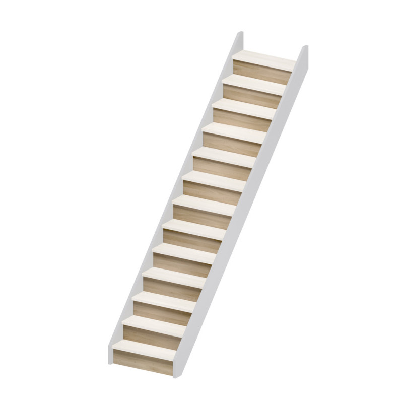 Les contremarches sont conçues pour une largeur d'escalier de 80 cm. Elles sont destinées à être combinées avec les limons et les marches de la gamme Milan pour la réalisation d'un escalier fixe droit. Une fois la volée droite assemblée avec ses limons et ses marches, les contremarches doivent être recoupées en largeur pour un ajustement parfait et une intégration esthétique.