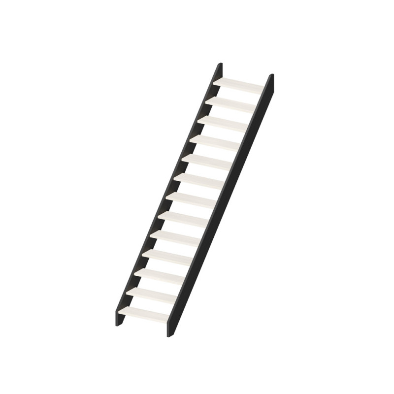 Ces limons sont destinés à la réalisation d'un escalier fixe droit. Ils servent de support latéral sur lequel viennent se fixer les marches et les contremarches. Leur utilisation est recommandée pour des projets de rénovation ou de construction neuve nécessitant une structure solide et esthétique. La couleur noire uniforme et la finition mate permettent une intégration visuelle harmonieuse, que l'escalier soit laissé apparent ou partiellement habillé.