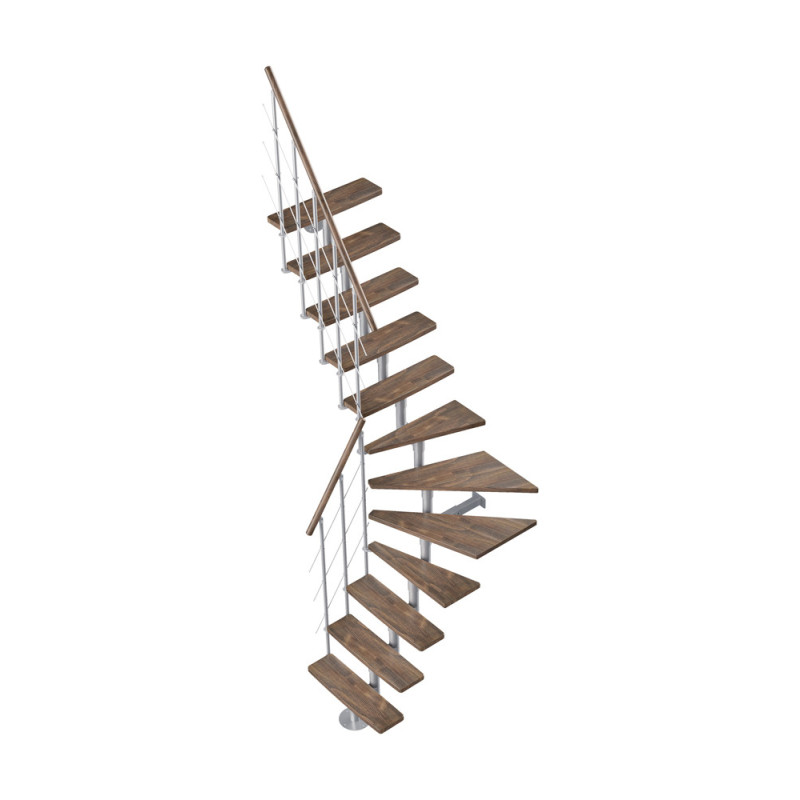 Ce type d'escalier fixe est principalement destiné à créer ou à remplacer un accès permanent entre deux étages dans une maison ou un appartement. Son design tournant le rend particulièrement adapté aux espaces contraints, comme les cages d'escalier étroites ou les halls d'entrée. Il constitue une solution structurelle pour accéder à des combles aménagés, à un étage supérieur ou à un sous-sol, ajoutant ainsi de la fonctionnalité et de la valeur au logement.