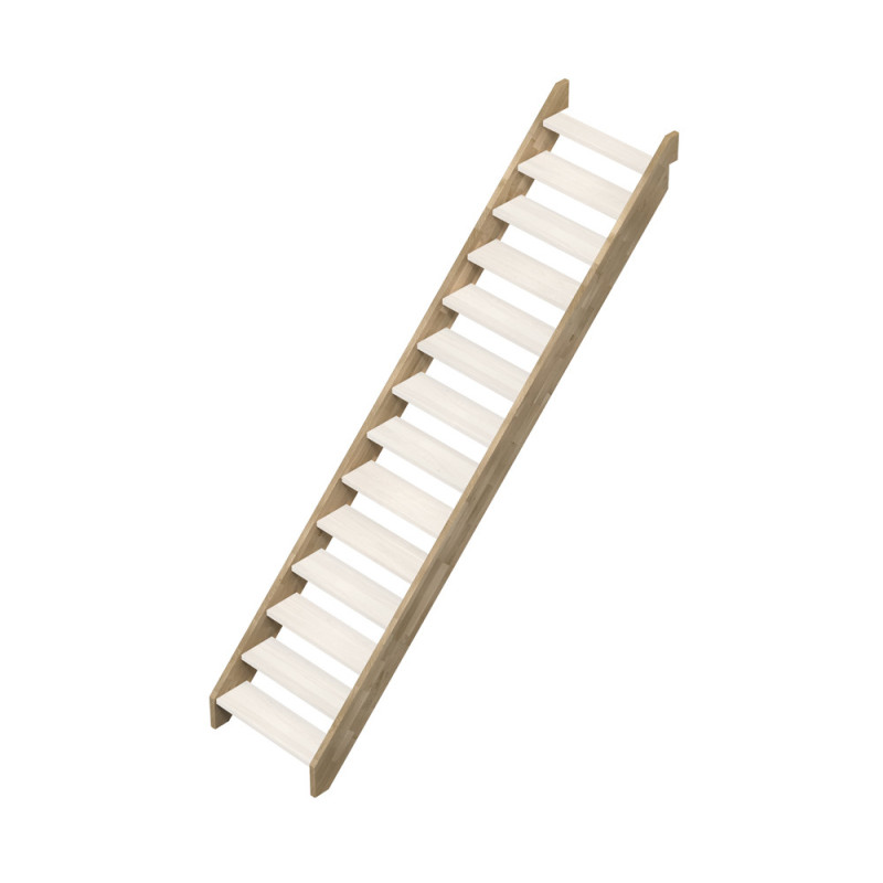 Les limons sont déjà entaillés pour recevoir précisément treize marches complètes ainsi qu'une demi-marche palière. Cette pré-usinage garantit un assemblage rapide et une géométrie d'escalier parfaite. Ils sont fournis par paire, formant ainsi le cadre latéral complet nécessaire pour un escalier droit d'une largeur de 82 cm.