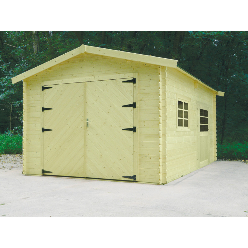 Ce garage en bois massif de 28 mm d'épaisseur offre une surface utile de 18,19 m² grâce à ses dimensions de 3,58 x 5,08 m. Sa structure traité en autoclave et sa double porte avec serrure assurent une protection durable et un accès pratique.