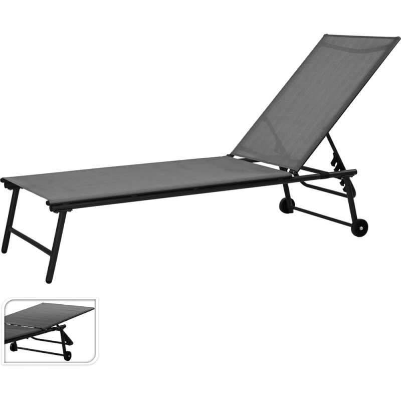 Le lit de soleil Enzo gris est une chaise longue au cadre en acier revêtu en poudre gris et au siège en textilène gris. Ses dimensions de 185 x 57 x 31 cm et sa capacité de charge de 110 kg en font un modèle fonctionnel et résistant.
