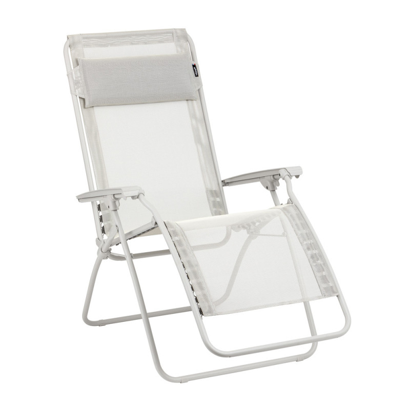Ce fauteuil de relaxation Relax R Clip beige offre une position Zéro Gravité à 127° pour un confort optimal. Sa toile Batyline amovible et sa structure acier HLE garantissent une résistance aux intempéries et un entretien facile.