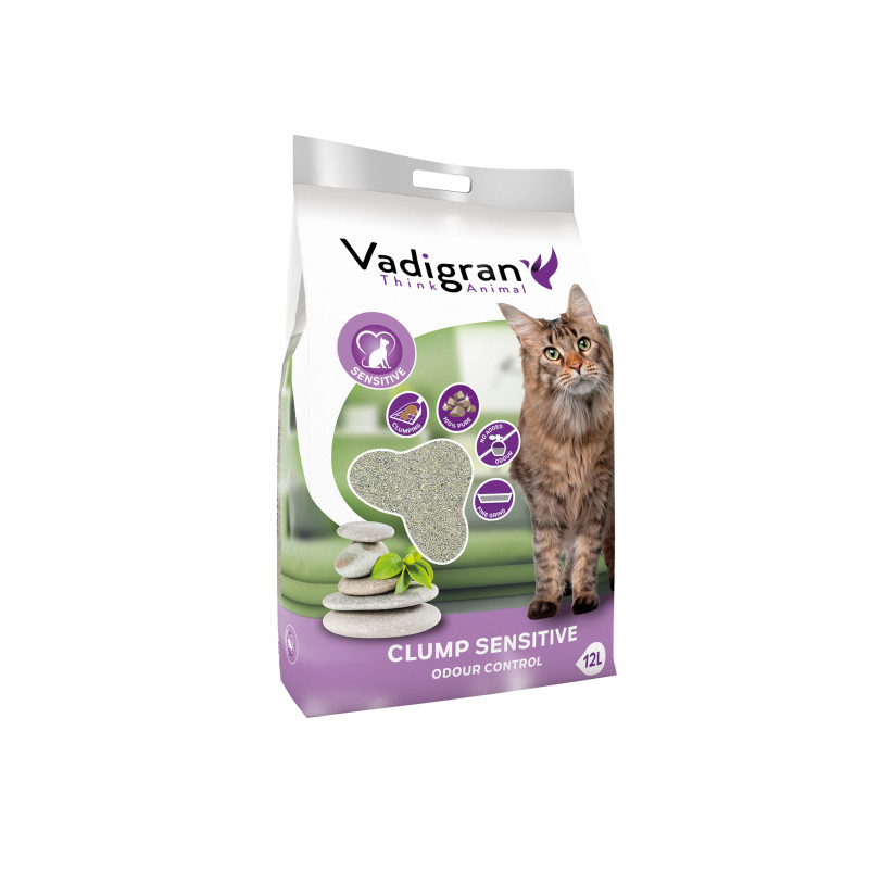 Destinée à être versée dans un bac, la litière pour chat Bentonite Sensitive de la marque Vadigran est spécialement conçue pour absorber efficacement et durablement les odeurs avant leur apparition.